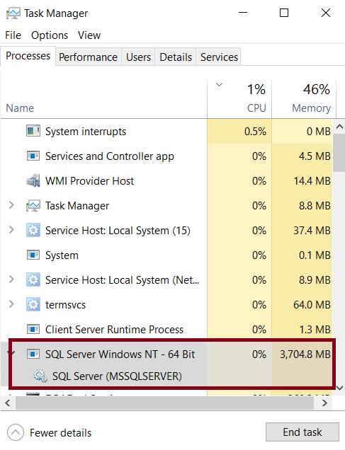 Figure-2: Monitor SQL Server's CPU Utilization from Task Manager