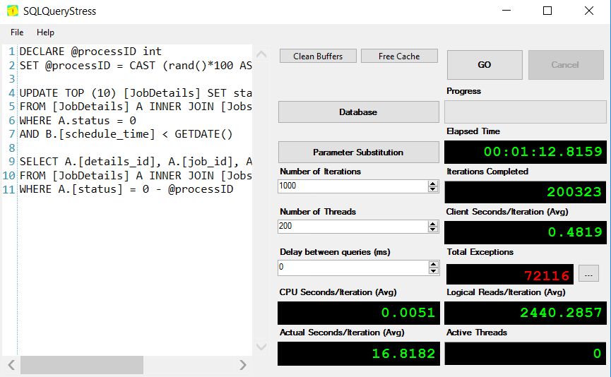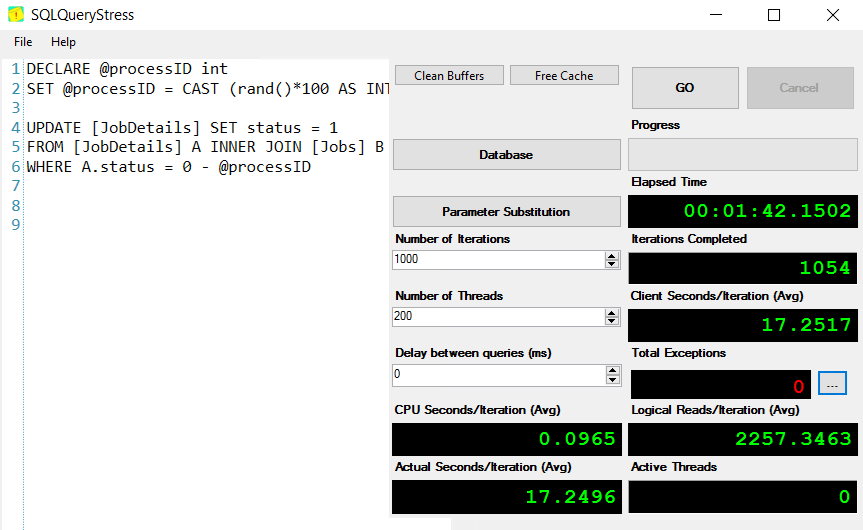 You can optimize the query using a CTE, UPDATE … OUTPUT, and proper locking hints that will eliminate the deadlocks and make the job tables stable and scalable. Now run Query Listing:-4 and Query Listing:-3 in two separate SQLQueryStress windows.