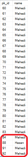 Data within 85 to 90 are missing due to above DELETE statement. Now INSERT value in IDENTITY column.