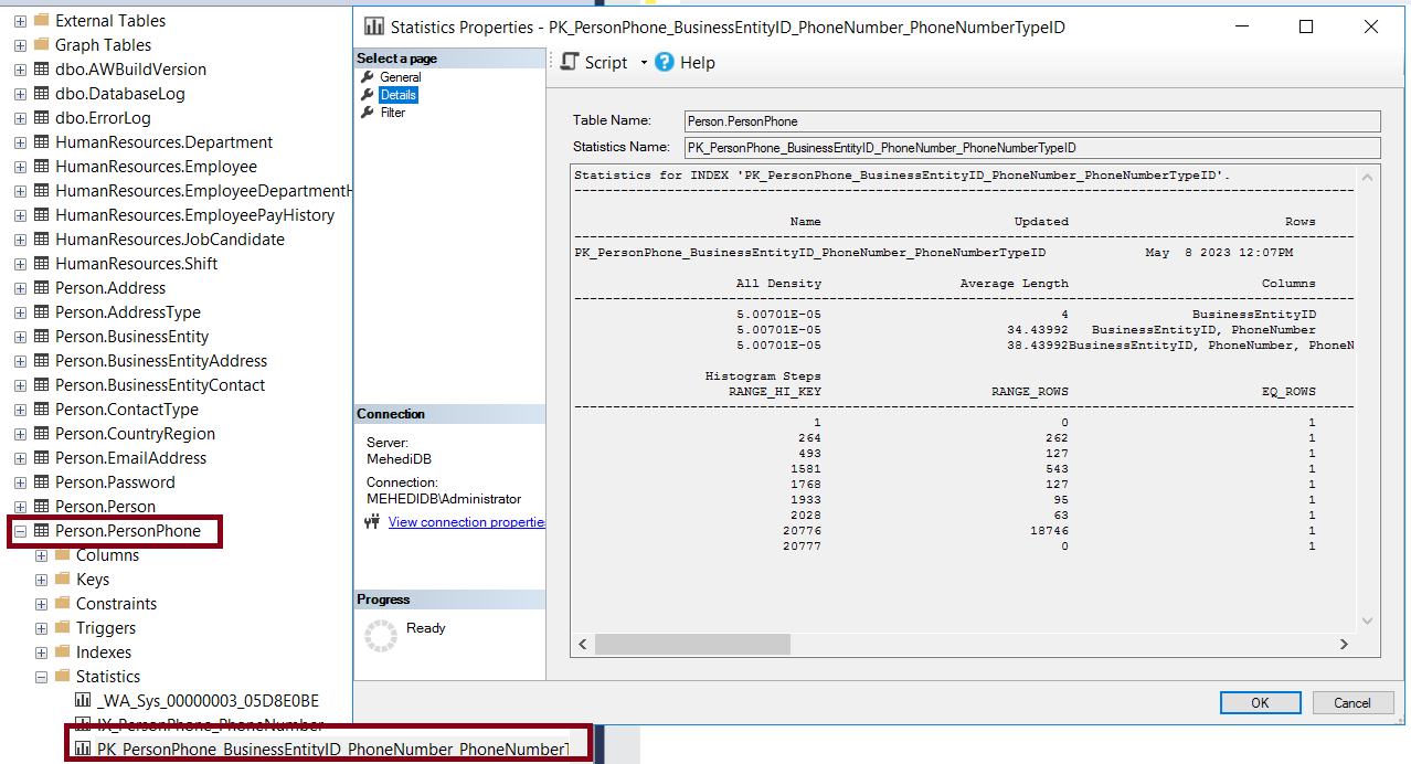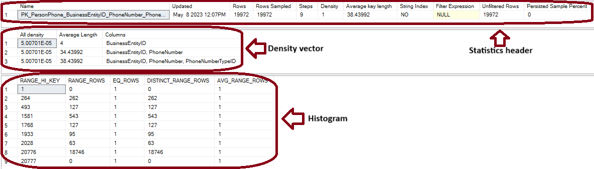DBCC SHOW_STATISTICS ('[Person].[PersonPhone]','PK_PersonPhone_BusinessEntityID_PhoneNumber_PhoneNumberTypeID')