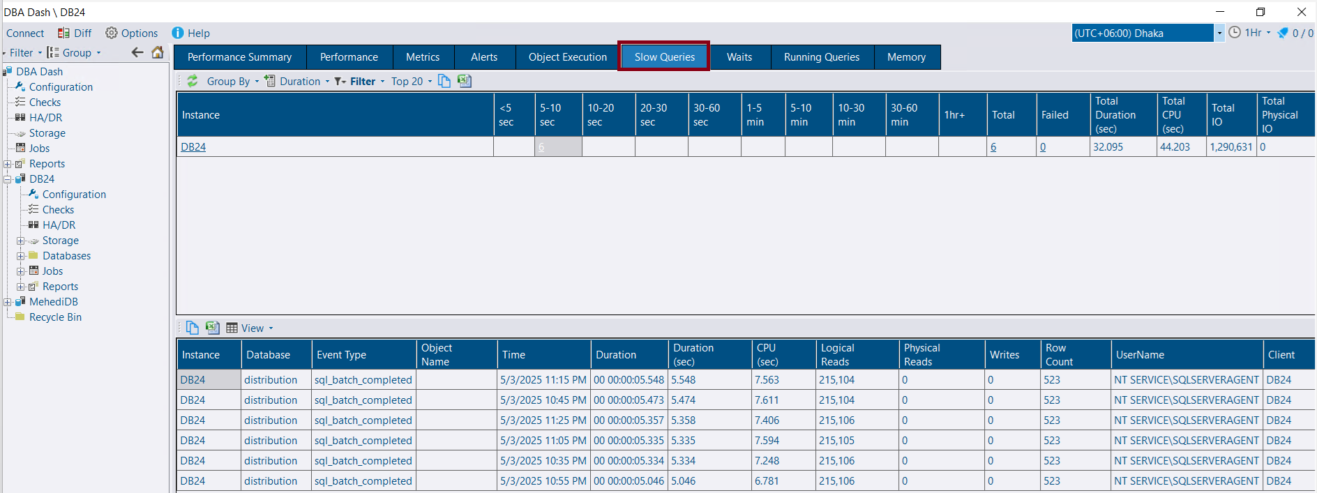 Now run DBADash.exe to see the collected data. You will land to Home where you will see metrics from all monitored instances.