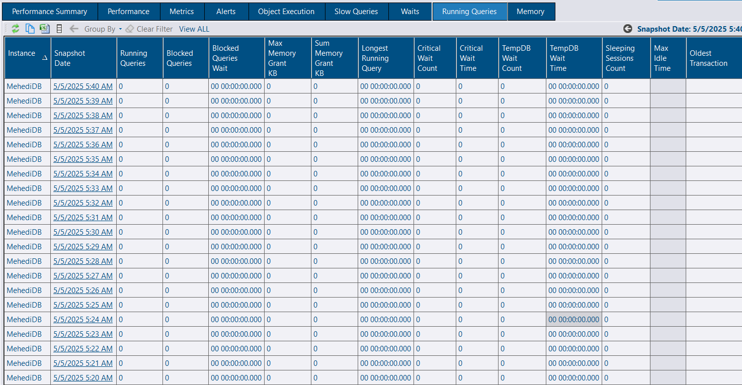 - Check the running queries right now or any previous point of time.