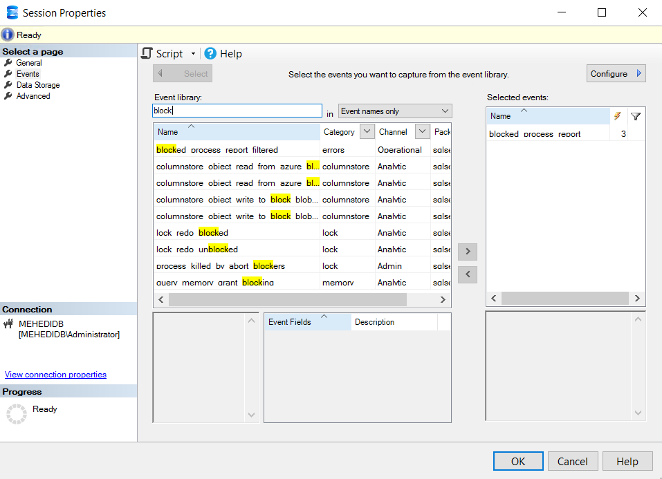 You can use extended events to watch blocking information. Open a new session from extended event. Type block in the Event library and add the blocked process report. Save it with a meaningful name. Once done view the live data. For detail about extended event check my article.