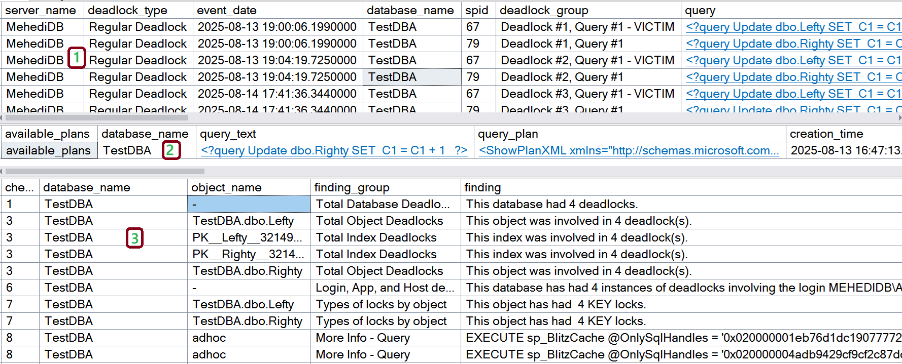 Now run sp_BlitzLock without any parameter which will display 3 result sets (Figure-2).